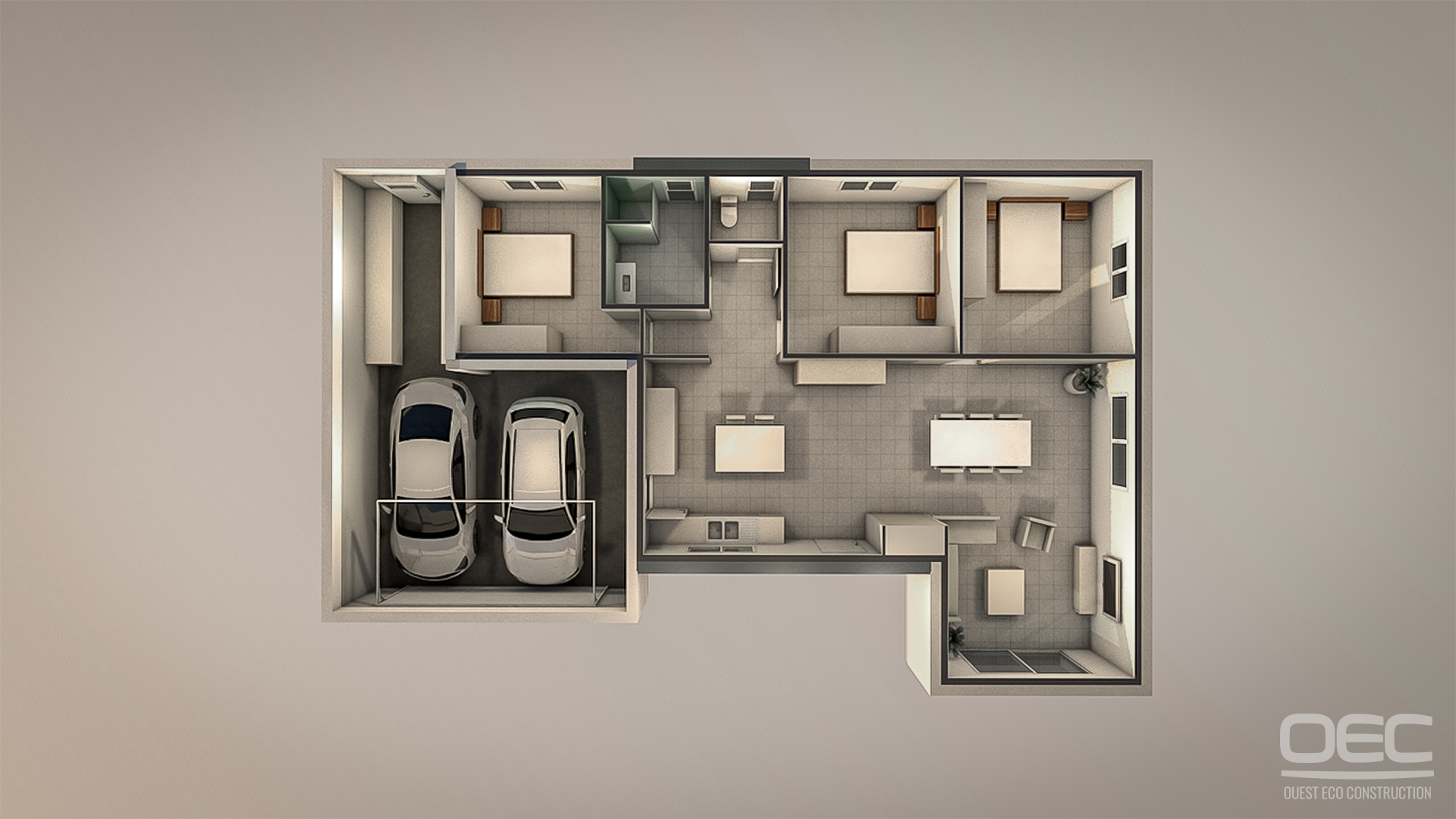 La maison peut être aménagée selon les besoins et les envies de la famille. Par exemple, il est possible d’agrandir la pièce de vie en réduisant le garage ou supprimant une chambre. Il est également possible de créer une chambre supplémentaire en réduisant le garage.